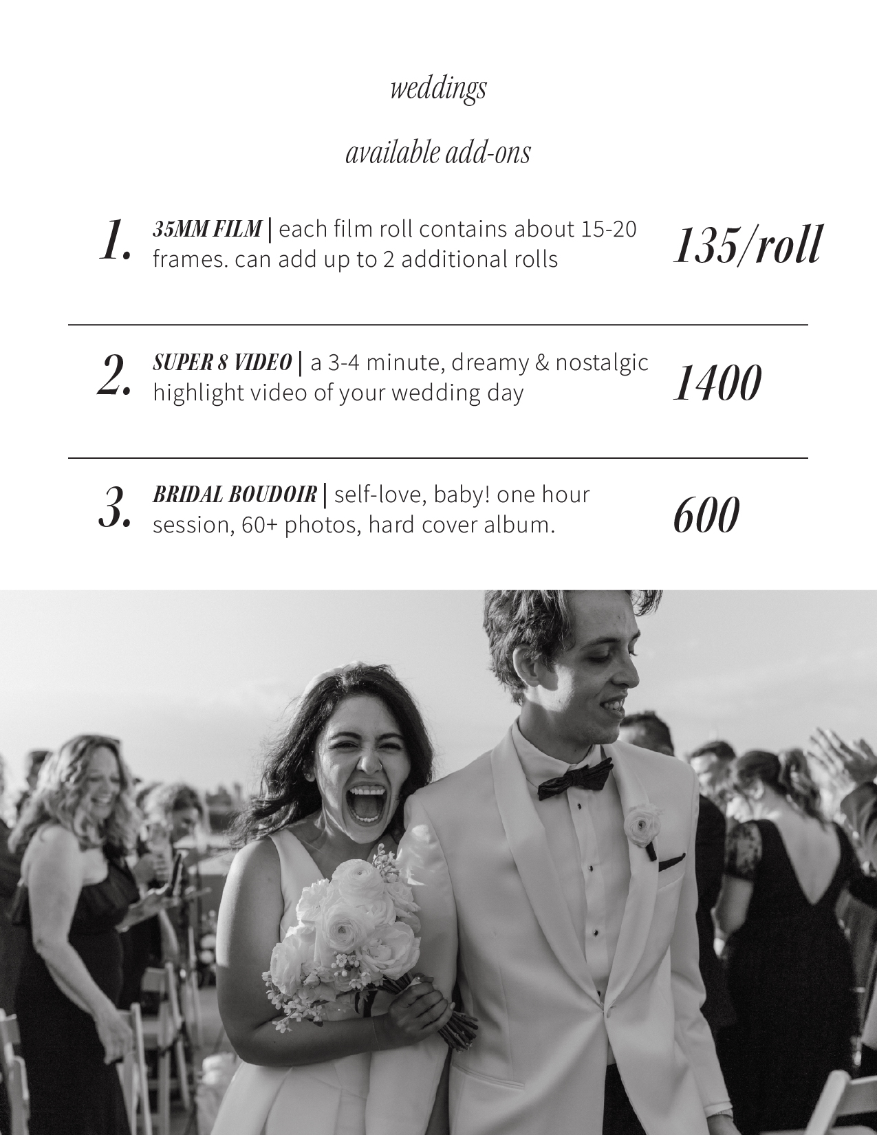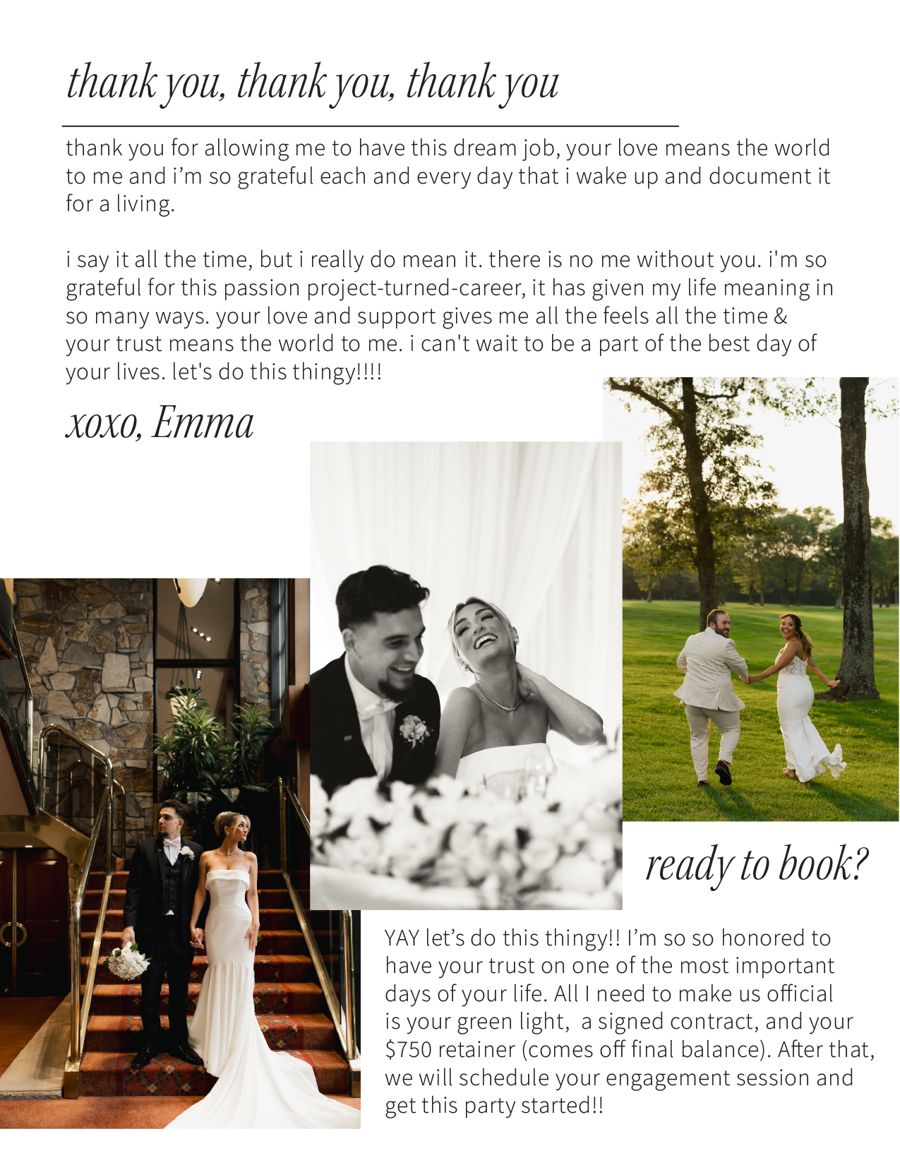 Hi, I'm Luna. I hope to work with you and capture your vision you have of your wedding day in the all the ways that you would like. I love photography & weddings I’m here for you every step of the way!